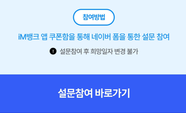 응모방법 : 대구은행 IM뱅크 앱 쿠폰함을 통해 네이버 폼을 통한 설문 참여