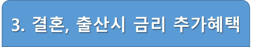 ◆ 추가금리 혜택 : 결혼하면 0.1%p포인트(p), 최초 출산 0.5%p, 추가 출산 1명당 0.2%p