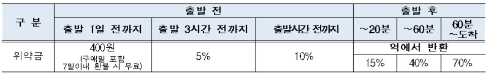 - 대상 열차 : 무궁화호 이상(관광전용열차 포함) 모든 열차